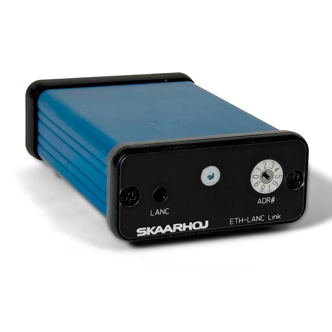 The ETH-LANC Link is an Ethernet to LANC protocol converter, allowing for straightforward control over LANC compatible cameras. This device enables users to perform basic camera functions such as zoom, iris control, and record start/stop via UDP communication from a SKAARHOJ device core. Despite LANC's inherent limitations, this converter opens up possibilities for remote camera operations in setups where direct control is necessary but challenging to implement due to distance or accessibility. Its compact and efficient design makes it an indispensable tool in any AV professional's kit.