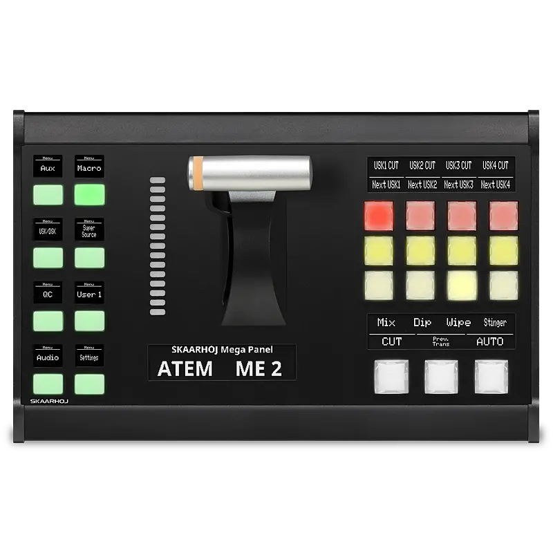 SKAARHOJ T-Block is a modular live switching controller that brings the precision of a high-quality T-bar in a compact and customizable form. It fits perfectly into SKAARHOJ’s MegaPanel system or works as a transition block for your custom surface. The T-Block offers a highly responsive T-bar with an LED ring, giving operators precise control over transitions and live video feeds. Paired with programmable buttons and encoders, it allows you to design your ideal control layout, whether you're working with cloud-based platforms like Grass Valley AMPP or hardware systems such as Panasonic Kairos, Vizrt TriCaster, BlackMagic ATEM and vMix. It’s the perfect companion for users who need tactile control over their live switching operations in a compact and easily expandable format.