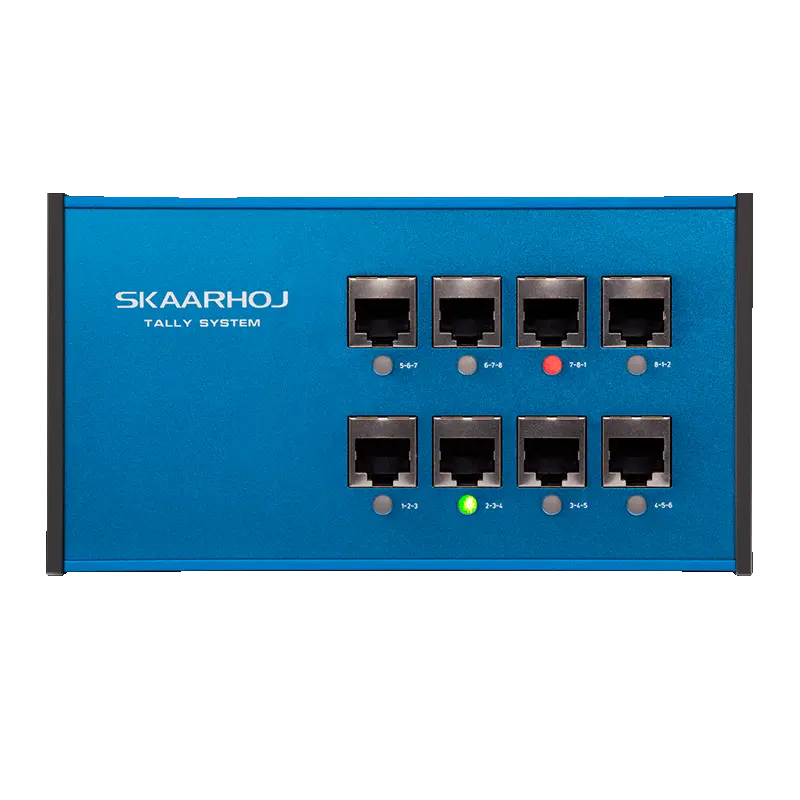 The Tally Box is a simple yet powerful external tally lamp system designed for broadcast, live production, and AV environments. It provides clear, visual identification of active cameras or speakers, supporting both universal and proprietary tally protocols such as TSL, Blackmagic, Sony, TriCaster, and more. The system supports up to 8 wired SKAARHOJ Tally Lamps wired to Ethernet-based Tally Box, offering seamless integration and easy deployment with Power over Ethernet (PoE), ensuring reliable tally management across a wide range of devices.