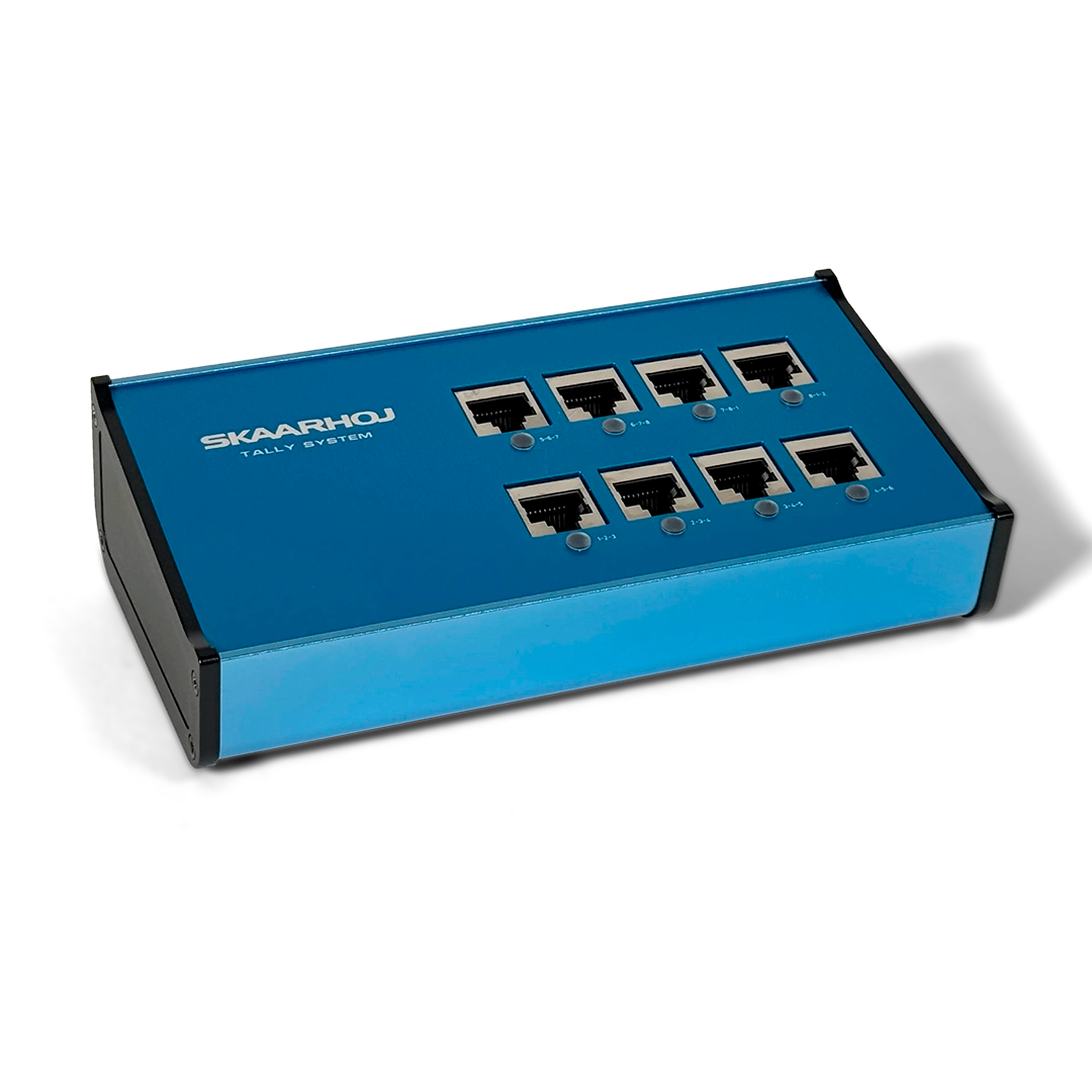 The Tally Link is a simple yet powerful external tally lamp system designed for broadcast, live production, and AV environments. It provides clear, visual identification of active cameras or speakers, supporting both universal and proprietary tally protocols such as TSL, Blackmagic, Sony, TriCaster, and more. The system supports up to 8 wired SKAARHOJ Tally Lamps wired to Ethernet-based Tally Box, offering seamless integration and easy deployment with Power over Ethernet (PoE), ensuring reliable tally management across a wide range of devices.